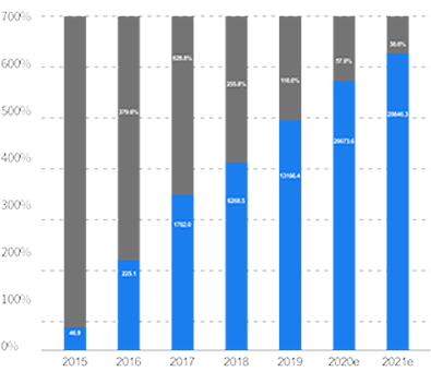 2015-2021年中国社交电商行业规模及增速